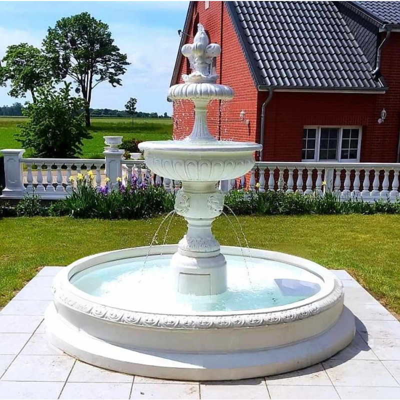 Gartenbrunnen Lorenzo 220 cm mit Bodenbecken 240 cm und Pumpe Steinbrunnen Springbrunnen Steinkunst BLACKFORM