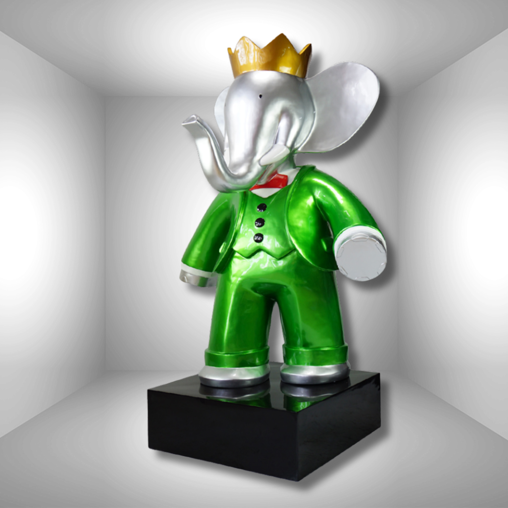 Elefant König Figur 180 cm mit Sockel Dekofigur Werbeaufsteller Comic BLACKFORM