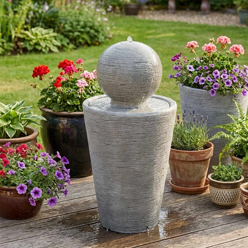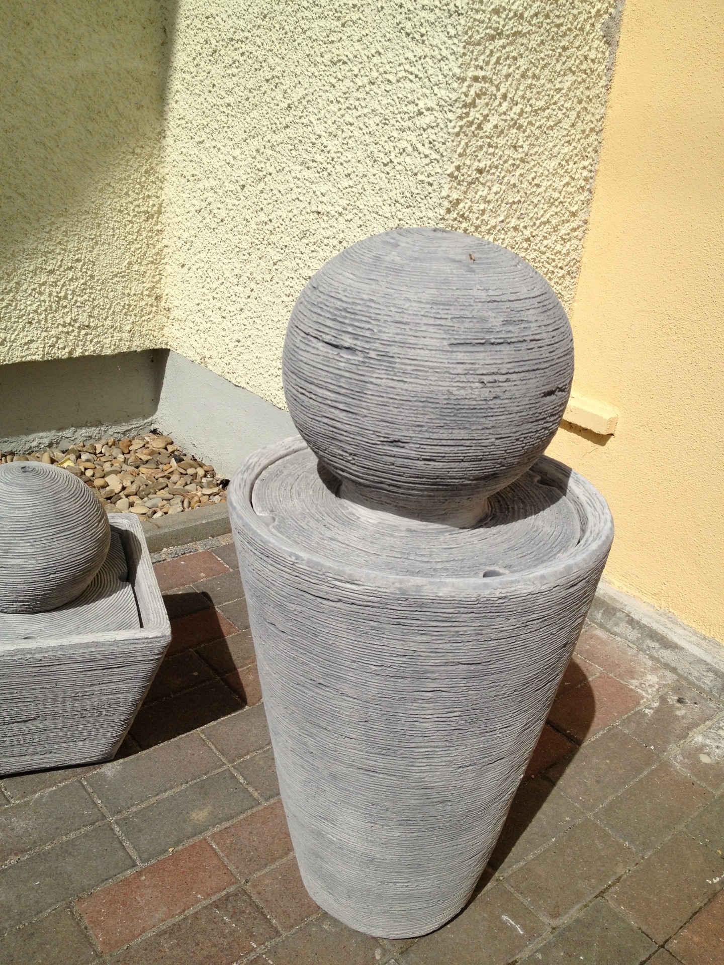 Gartenbrunnen Steinkugel 86 cm mit Pumpe alt patiniert Steinbrunnen Steinkunst BLACKFORM