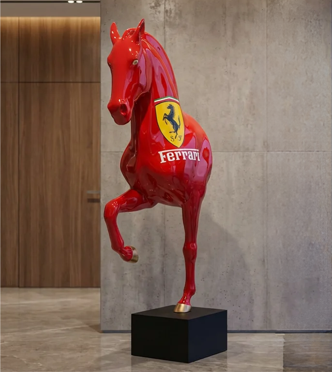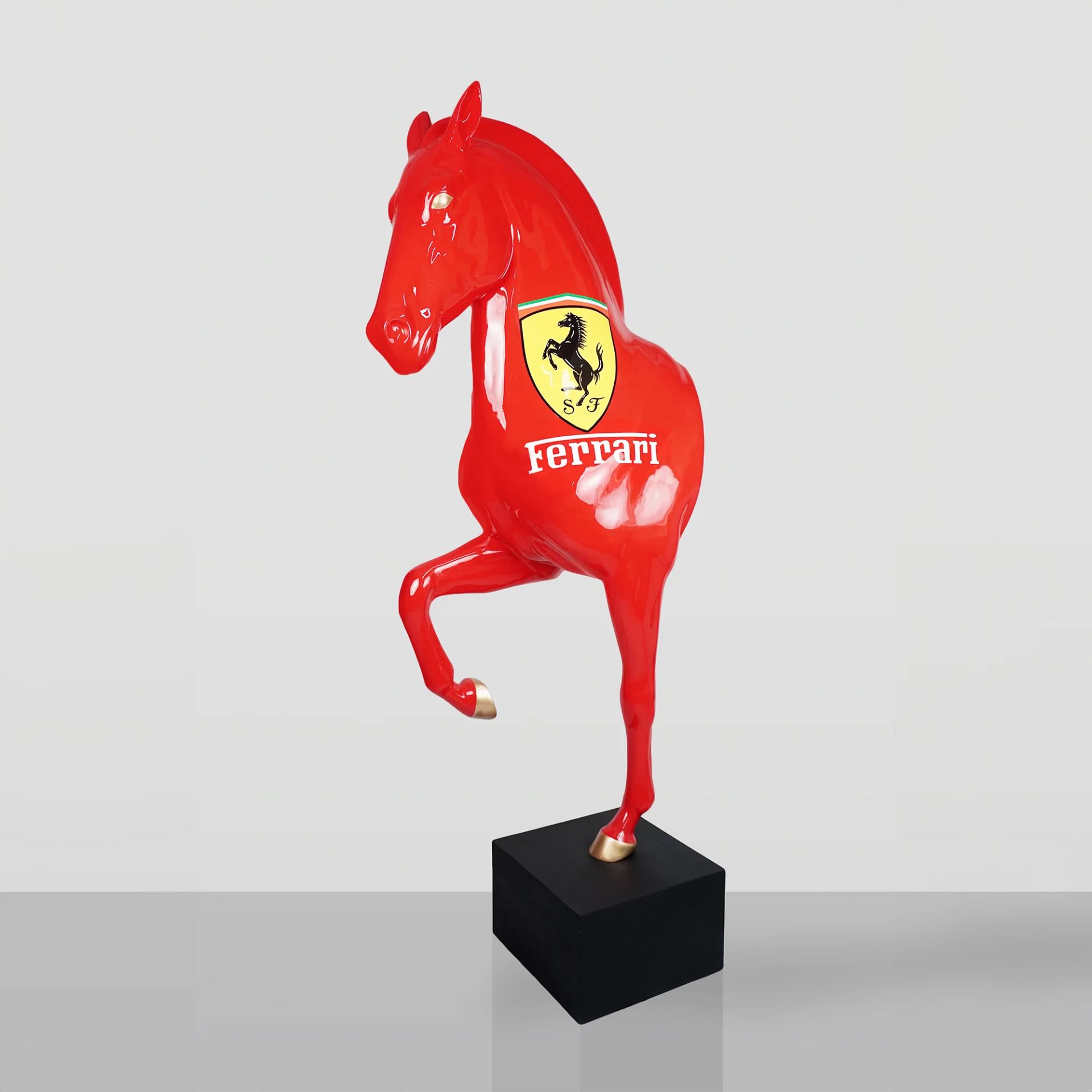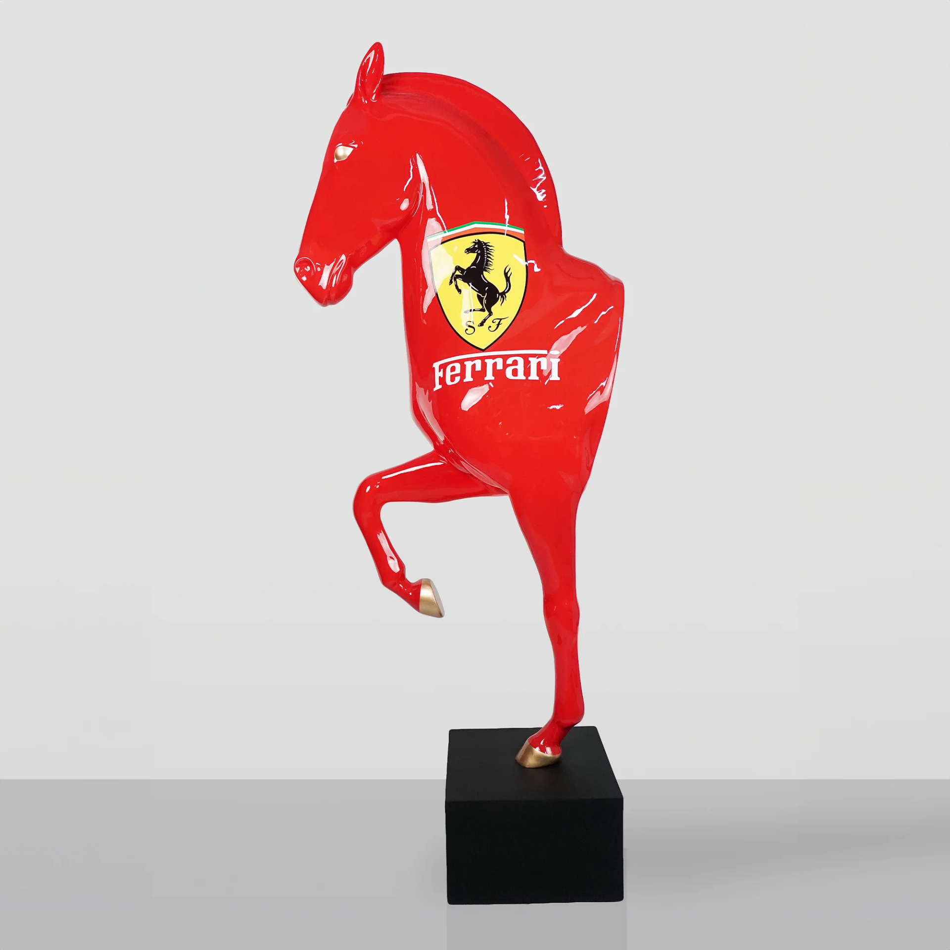 Kopie von Pferd Büste Ferrari Rot Lebensgroß auf Sockel Tierfigur Pferdebüste BLACKFORM