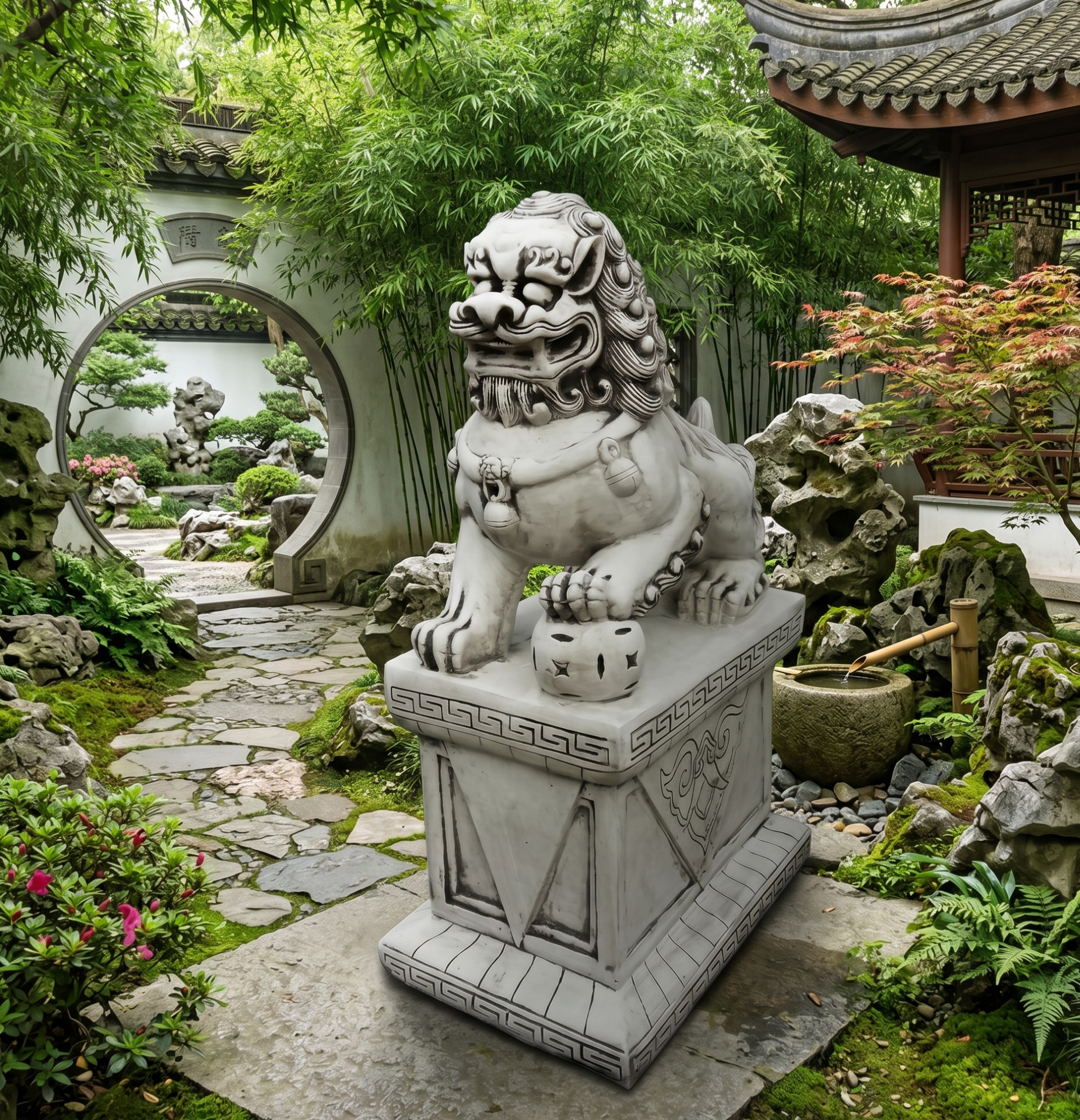 - Auswahl Fu-Löwe: Der männliche Fu-Löwe hält einen Globus unter seiner rechten Pfote.